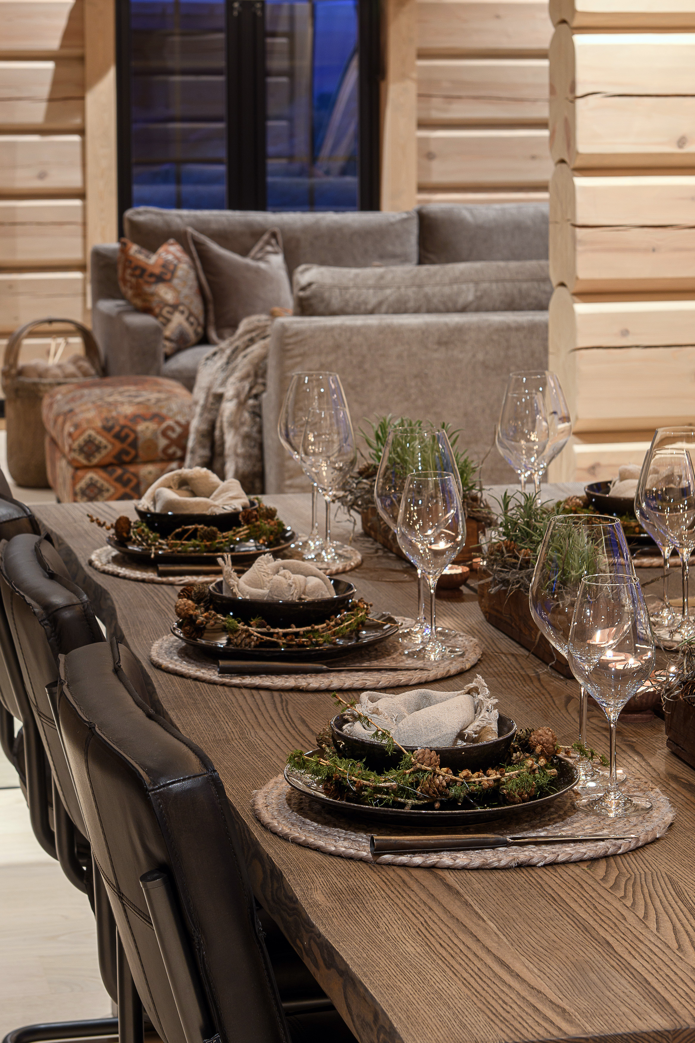 En robust Miele komfyrtopp med innebygd benkeventilator og et gedigent vinskap egner ingen tvil om at kokken her skal ha de beste fasiliteter. Nova kjøkkenet fra Kistefos er lett gjenkjennelig på de glatte skuffefrontene. Fravær av profiler og innrammingen av overskapene gir kjøkkenet den moderne inframe looken mange ønsker i dag.