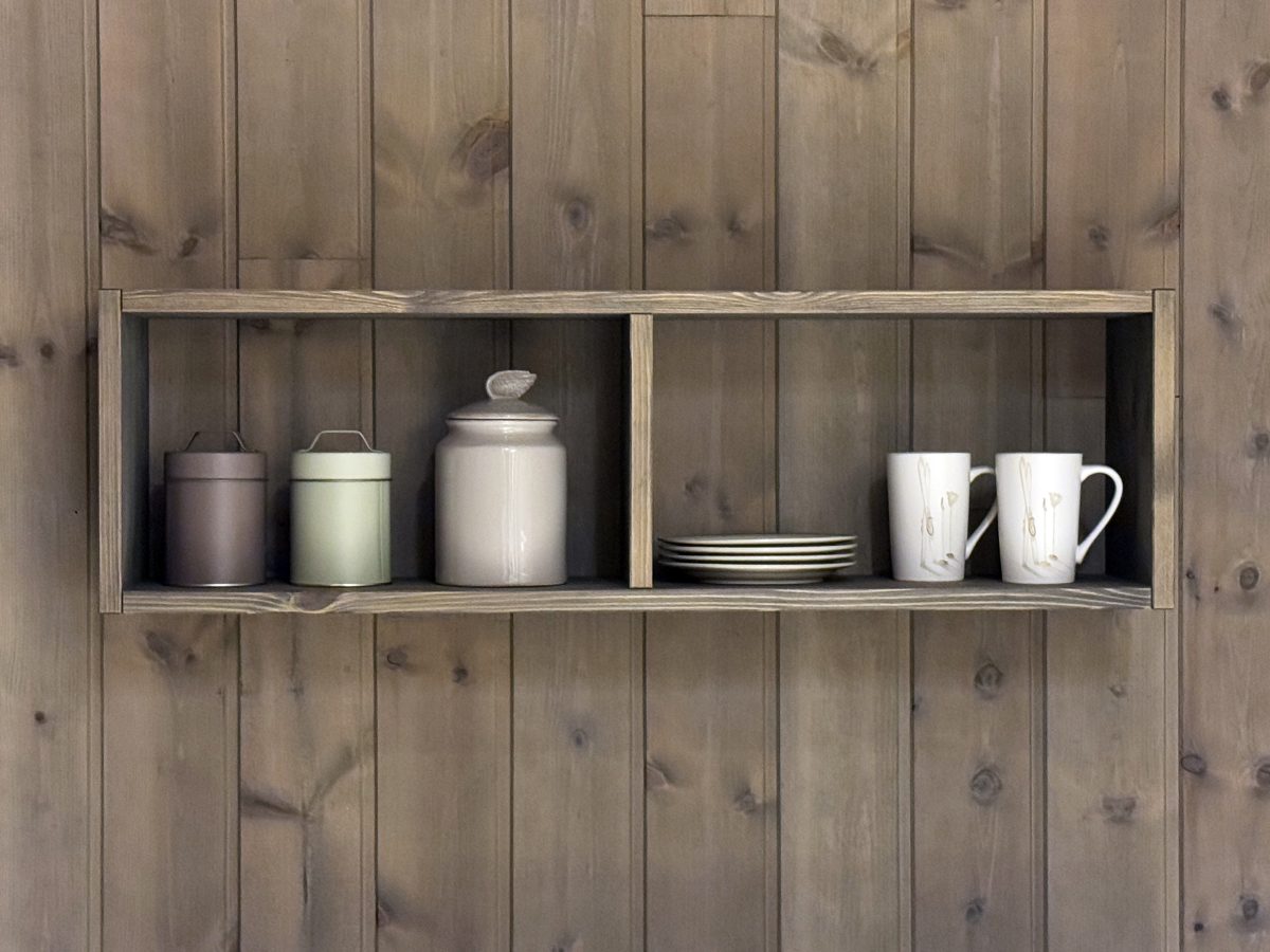 Den praktiske Cafe-hyllen er laget i 22mm furu heltre.