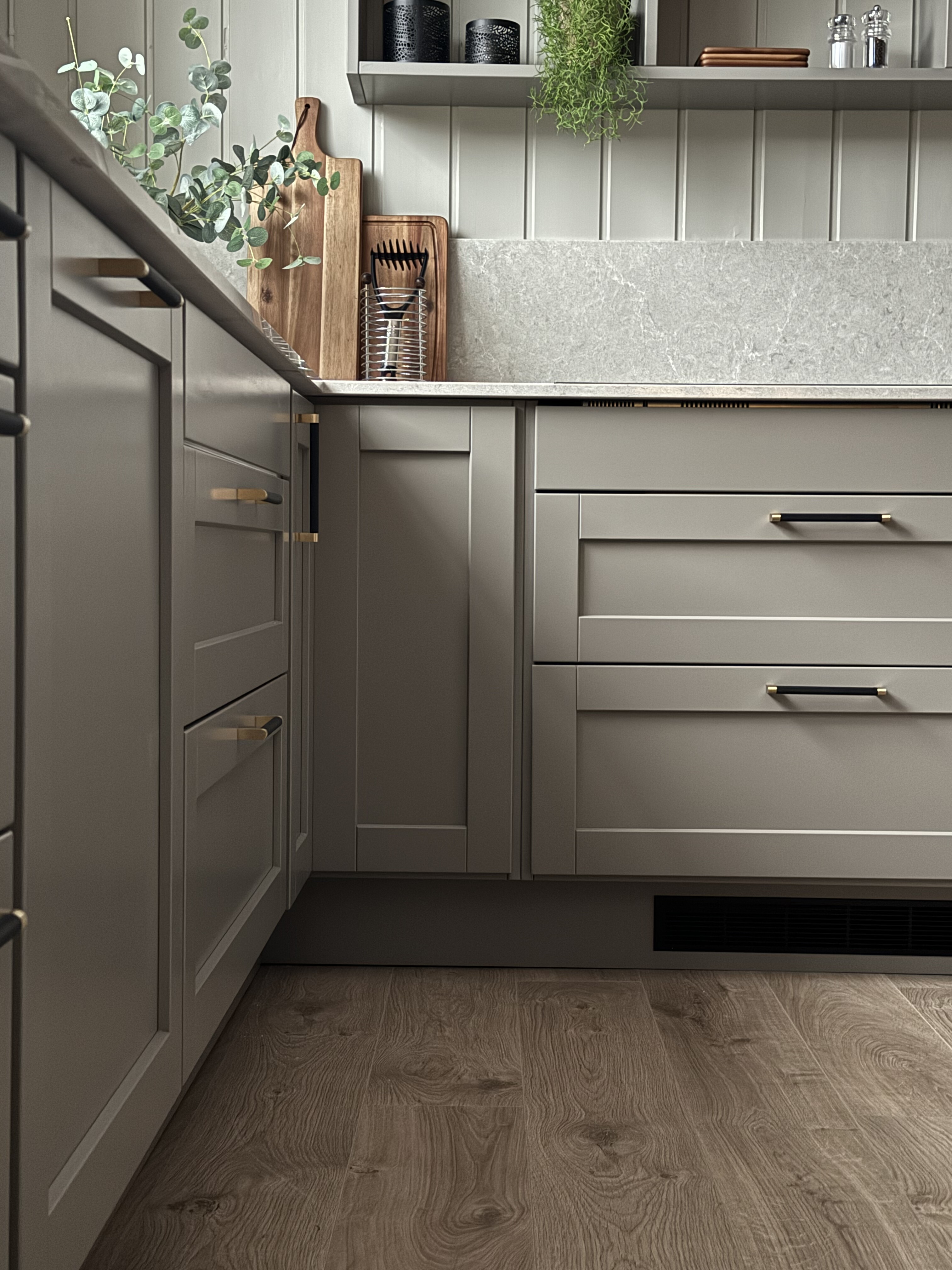 Et gjennomprøvd solid bad i heltre med eksklusive skinner med soft close. Kvalitet fra a – å, skuffefrontene er laget av kvistfri bjerk. De dype skuffene har masse plass og gir deg god oversikt. Skuffefrontene på Nova badene kan leveres med slette skuffefronter eller med fylling, se Nova skuffefront med fylling på de to kjøkkenbildene bakerst i galleriet. Som standard leveres badene med topplate i 30mm heltre eik, men vi mot pristillegg leverer vi også badene med steinplate, slik på bildene her. Alle våre bad bygges selvsagt  ferdig på  fabrikken, ingen ting kommer flatpakket fra oss. Det tilsier at monteringen er relativt enkel, men mange velger likevel å koste på seg frakt og montering fra vårt monteringsteam.